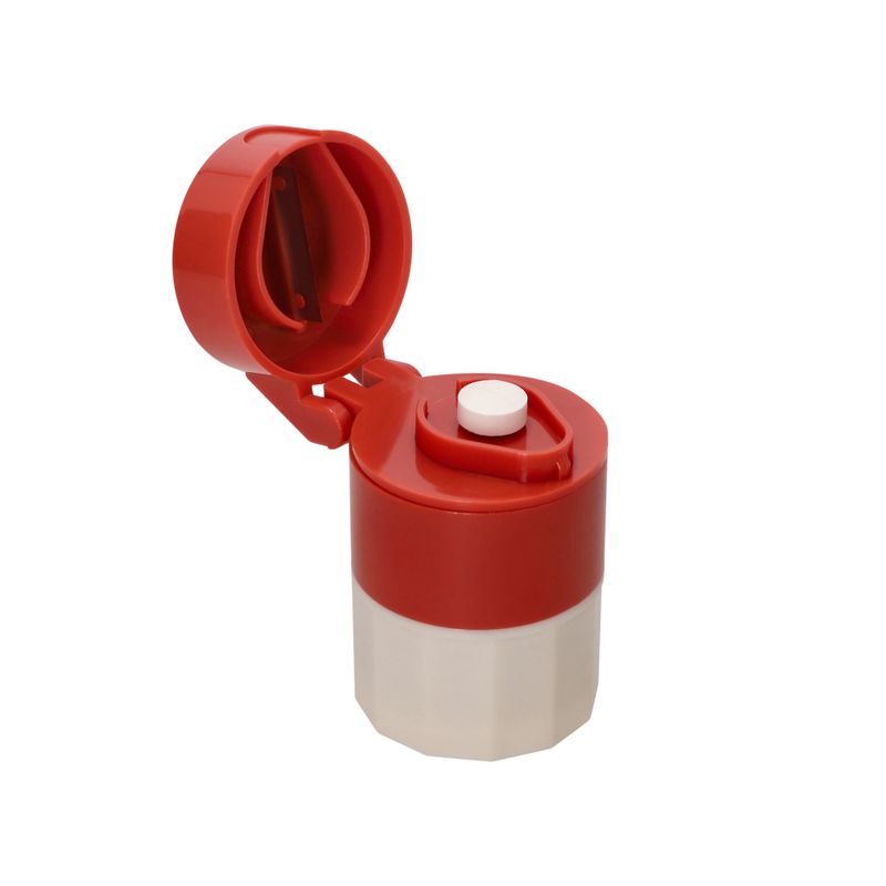Moledor y cortador de pastillas, ideal para tener en tu botiquín. Cuenta con instrucciones de uso.