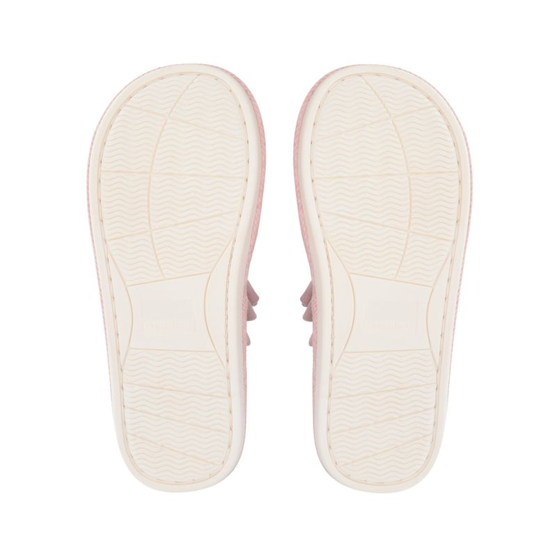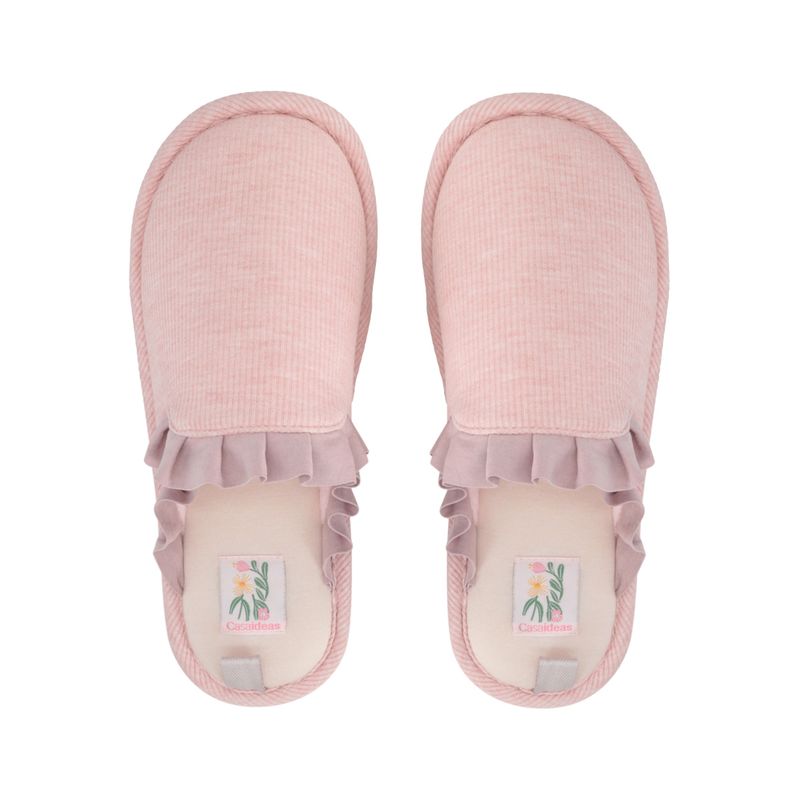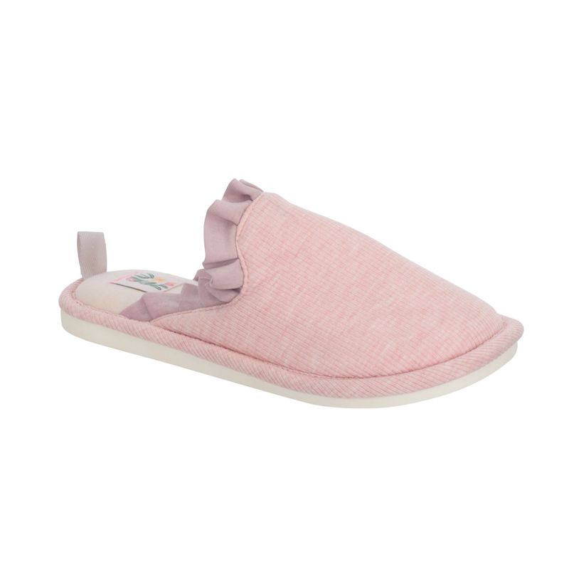 Pantuflas de telas jersey con vuelos en el borde, suave interior y suela de PVC. Ideales para estar en casa. ¡Encuentra tu talla perfecta!