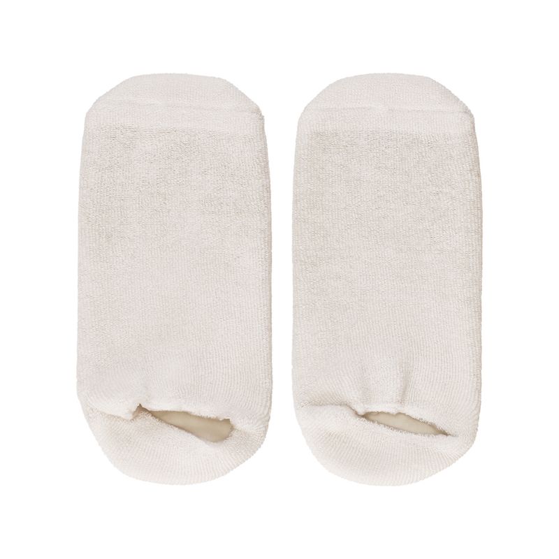 Calcetines de spa con revestimiento de polímero termoplástico (SEBS) y con aceites esenciales y vitamina E para tratamiento de hidratación. Ayuda a hidratar de una manera fácil y cómoda tus pies con estos suaves calcetines. Su composición ayuda a que la absorción de los nutrientes de las cremas o lociones que te apliques sea más efectiva.