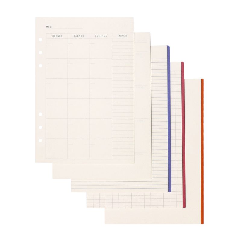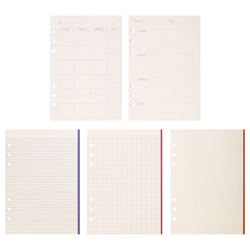 • Escritorio y PapeleríaOrganizadores para escritorioArchivadores y carpetasSet 75 Hojas Repuesto A5 para Archivador 14,5x0,1x21 cm