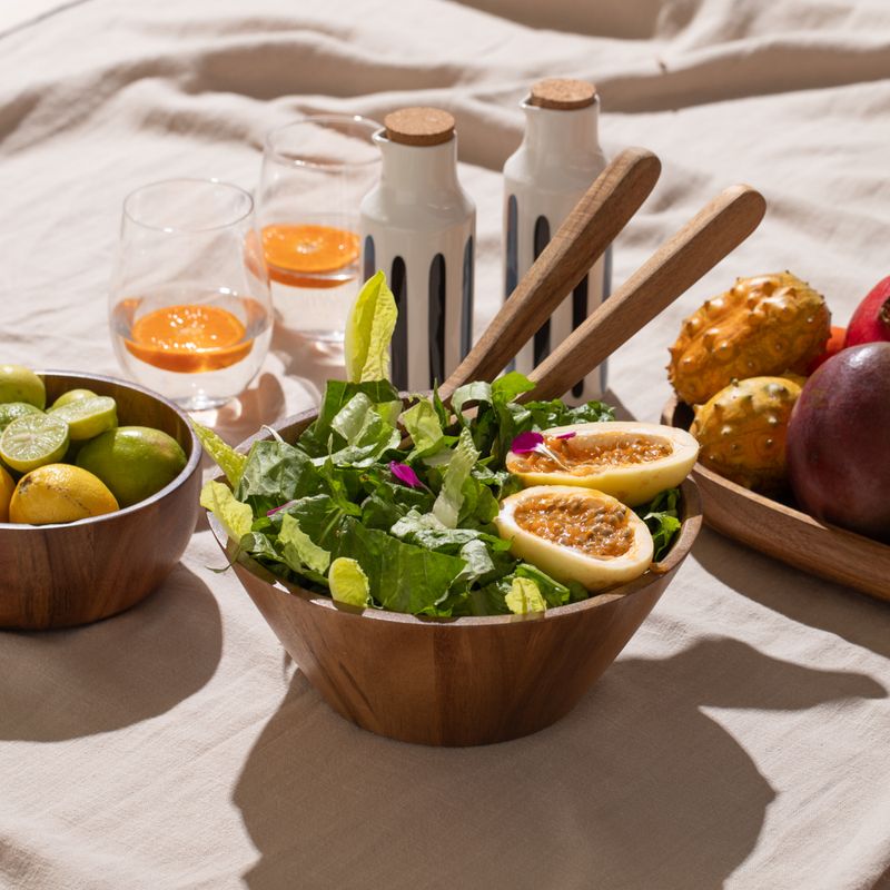 ComedorLoza y VajillaBowls y EnsaladerasSet Servicio para Ensaladas de Madera Acacia