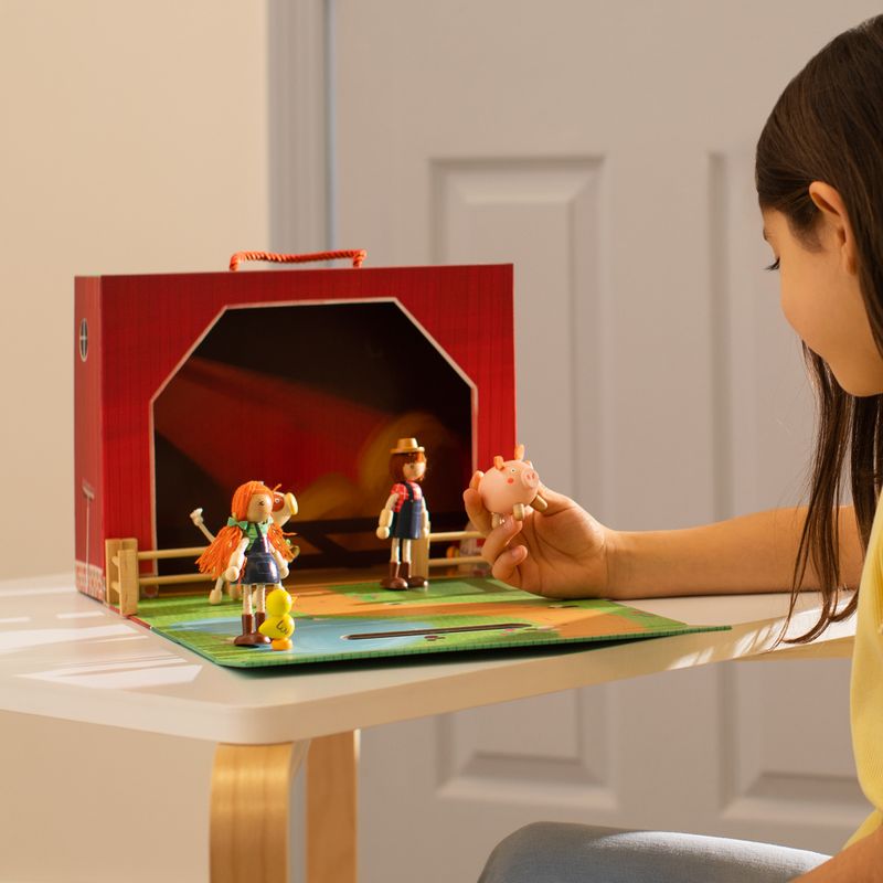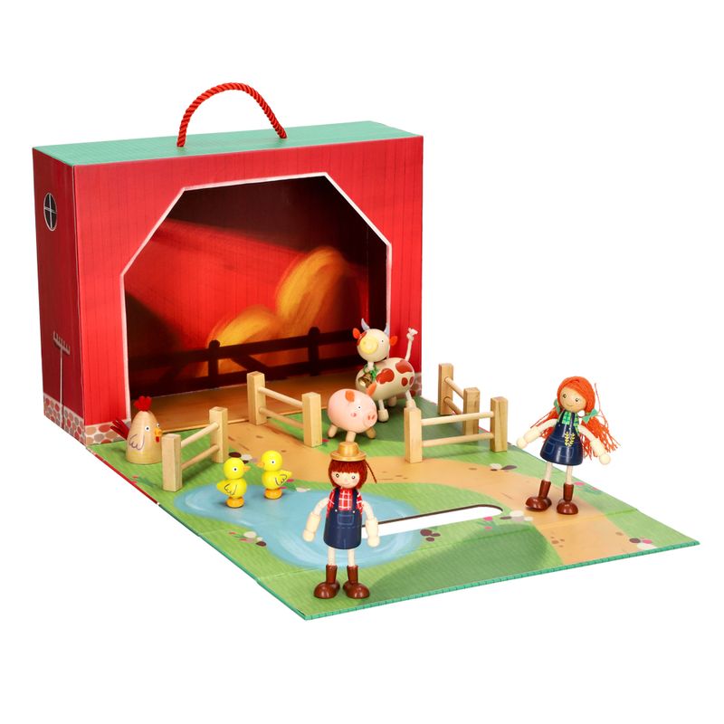 Niños y bebéJugueteríaMuñecas, casas y accesoriosMaleta con Mobiliario de Madera Granja Castilá