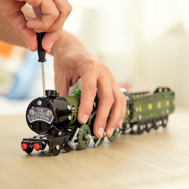 Armable metálico a escala FLYING SCOTMAN / Nivel 2. Contiene: 340 piezas / 238 piezas de armado y 2 herramientas para armar.