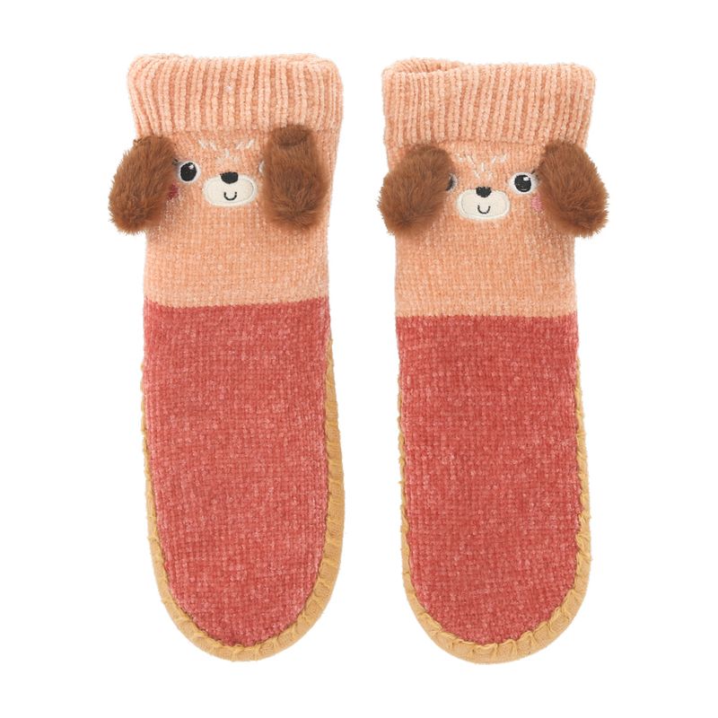 Calcetas infantiles tejidas con tela cordero en su interior y suela antideslizante.